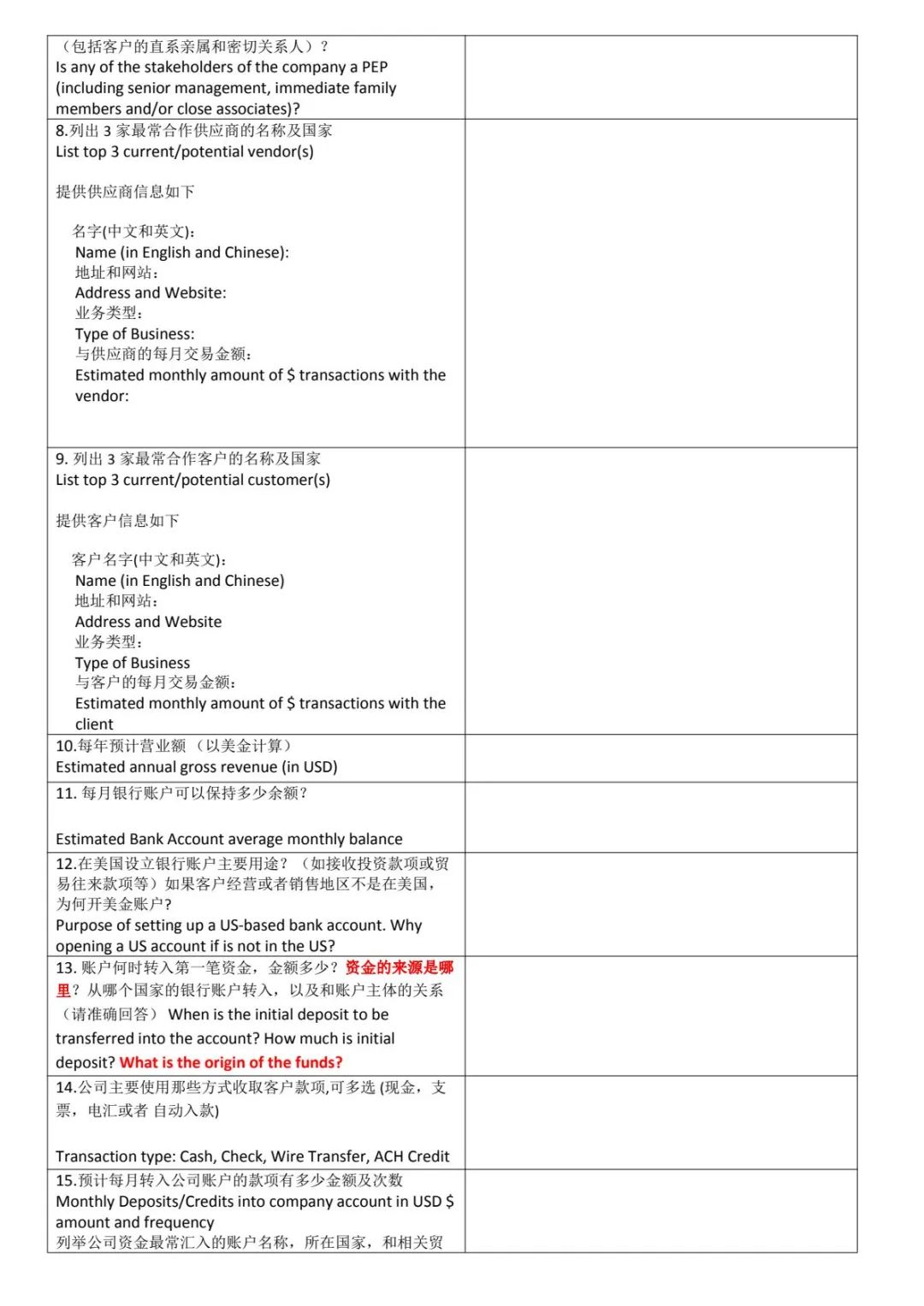 • 公司业务详情:描述公司主营业务、商业模式、预期交易伙伴及金额、预计年度营业额、账户平均月余额等。