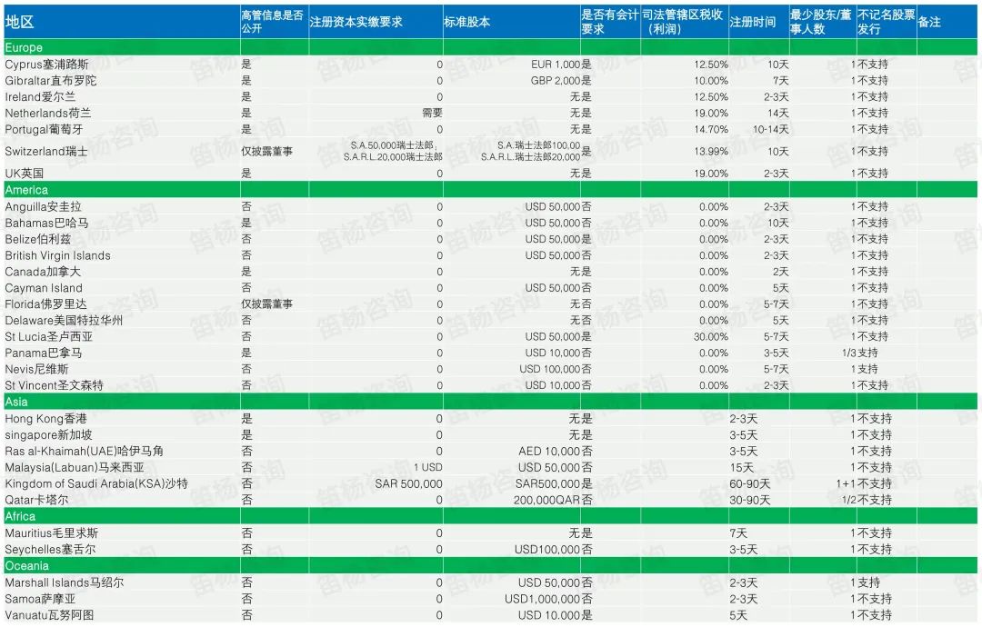 免除当地所有的税收以及印花税,税务管制比较少,外地经营所得利润无须缴纳利得税,可以进行合理规划税务。无须提供核数师报告,只需保留资料反映经济状况即可。