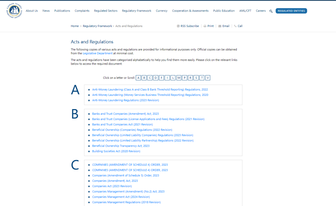 更多公司的法相关的内容,可以在开曼官网查阅:https://www.cima.ky/acts-and-regulations