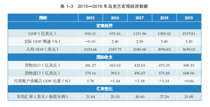 表 1-3 2015—2019年乌克兰宏观经济数据