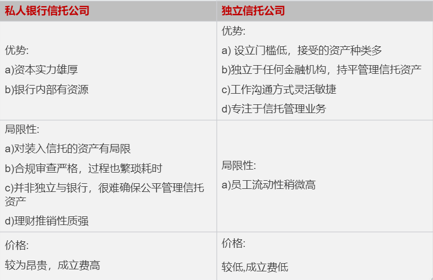 独立的信托公司,相比于私人银行信托公司具有更多优势。