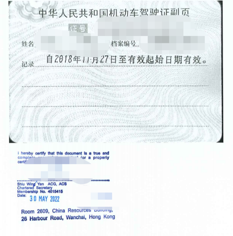 政府核证副本:是由政府办公室官方人员签发的真实副本文件,该机构同时也负责文件正本签发,例如公司注册处查册结果真实副本、出生及结婚记录真实副本等等。