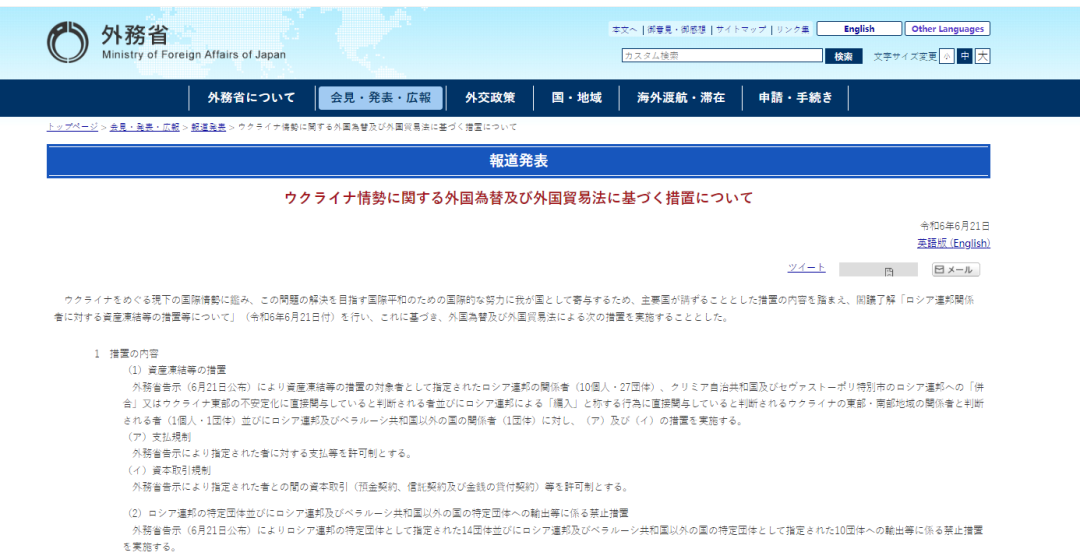 据路透社6月21日报道,日本外务省当天发表声明,宣布对“在俄乌冲突中支持俄罗斯的个人和团体”实施新一轮制裁,包括对数家中国企业实施贸易限制。日方称,对中企实施相关制裁尚属首次。