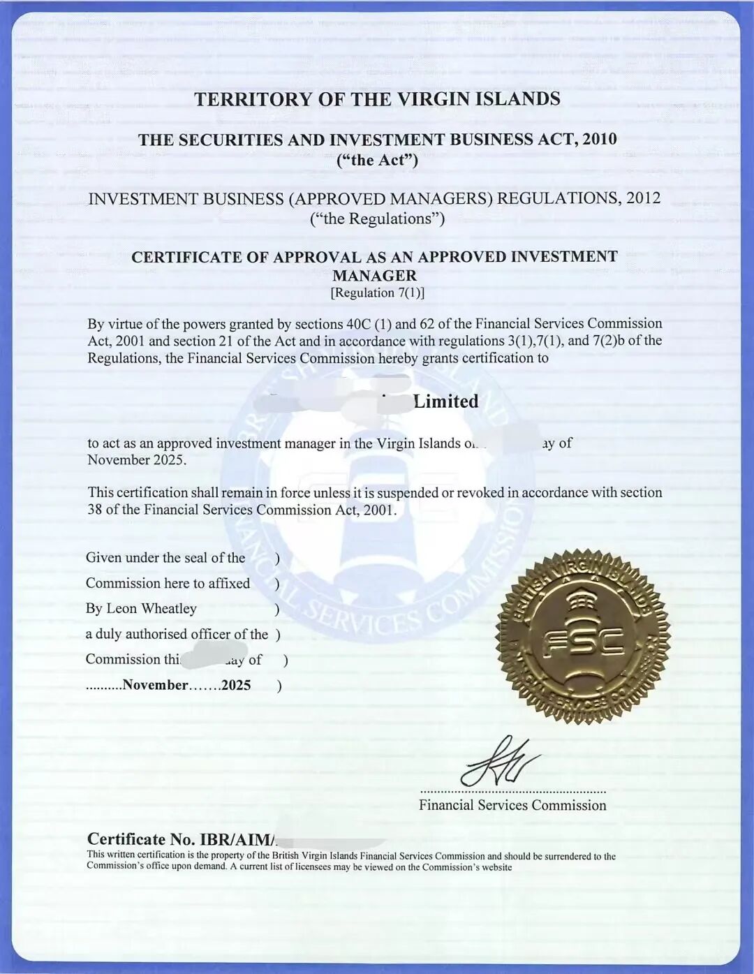 BVI 获准基金管理人牌照