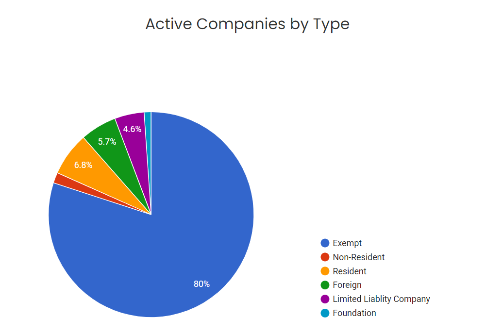 “按类型划分的活跃公司”饼图清晰展现了开曼公司的结构分化逻辑: