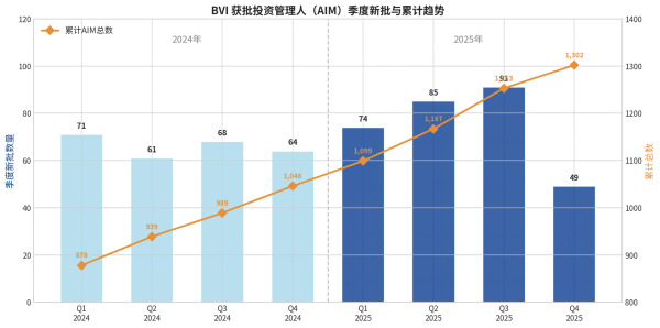 截至2025年末,BVI累计持牌的AIM总数已达到1,302家,较2024年末的1,046家大幅增长了 24.47% [1][2]。