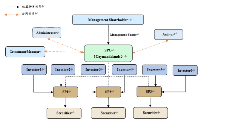 有限公司是私募证券基金(Hedge Fund或Mutual Fund)常见的基金组织架构,进一步地,伞形基金是公司型基金最常用的变体架构,开曼群岛SPC基金,新加坡VCC基金,香港OFC基金都是典型的伞形基金安排。以开曼SPC基金为例,其全称为独立投资组合公司(Segregated Portfolio Company,“SPC”),其作为独立法律实体的豁免公司,可以设立多个独立投资组合(Segregated Portfolio,“SP”),且每个SP之间及SP与SPC之间在资产和负债上都是独立的。实操中,在SPC主基金设立之后,可以随时以极快的速度和极低的设立价格发起设立不同的SP子基金。对于SPC型基金而言,SPC型基金的股东通常分为管理股东和参与股东,管理股东持有管理股份(management shares),享有投票权,参与股东持有参与股份(participating shares),仅享受收益权,不享有完全的投票权在英美法系董事会中心主义的法律框架下,除公司法规定的或公司章程规定的由股东会行使的权利外,董事行使所有的公司权利,同时,董事还需要履行公司法规定的义务,包括但不限于保存、更新公司的股东名册、保存公司股东会的决议文件及在公司信息发生变更时及时在注册处进行信息更新等。此外,董事还可将基金的投资管理事宜委托给投资管理人。