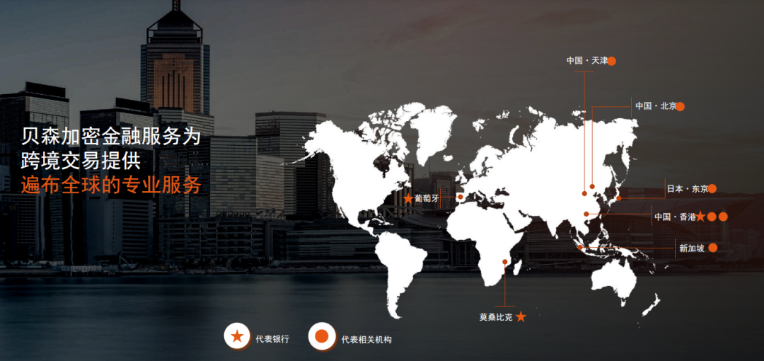 贝森银行在全球范围内设有多个代表银行和相关机构,如中国·天津、北京,葡萄牙,日本·东京,中国·香港,新加坡等,以提供遍布全球的专业服务。