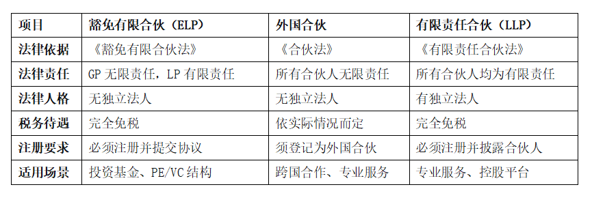 二、豁免有限合伙(Exempted Limited Partnership, ELP)
