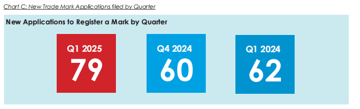 商标申请量79宗:同比激增27.4%(2024Q1:62宗)
