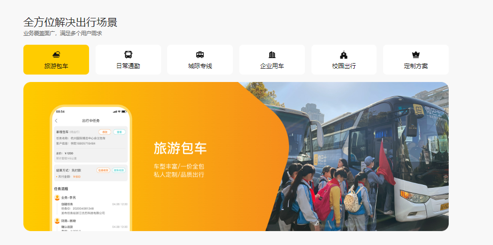 微巴士打造全球一站式定制包车行业全流程服务平台,通过数字化技术赋能定制包车出行场景运营,业务计价、需求管理、调度派单、服务监管、财务结算、车队和司机导游管理等多个环节;通过平台化数字化高效运营能力和标准化服务品质流程和强大供应商整合能力,推进产业中人力,资产和资金的周转效率提升,加快产业升级。