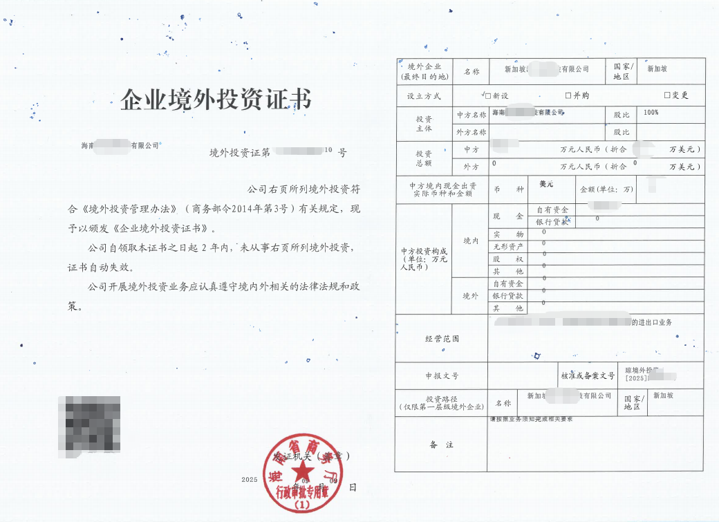 近日,笛杨咨询成功协助海南XXXX科技有限公司完成境外直接投资(ODI)外汇登记备案,标志着该公司在新加坡的投资项目正式获得监管部门批准,为其全球化战略布局奠定了坚实基础。
