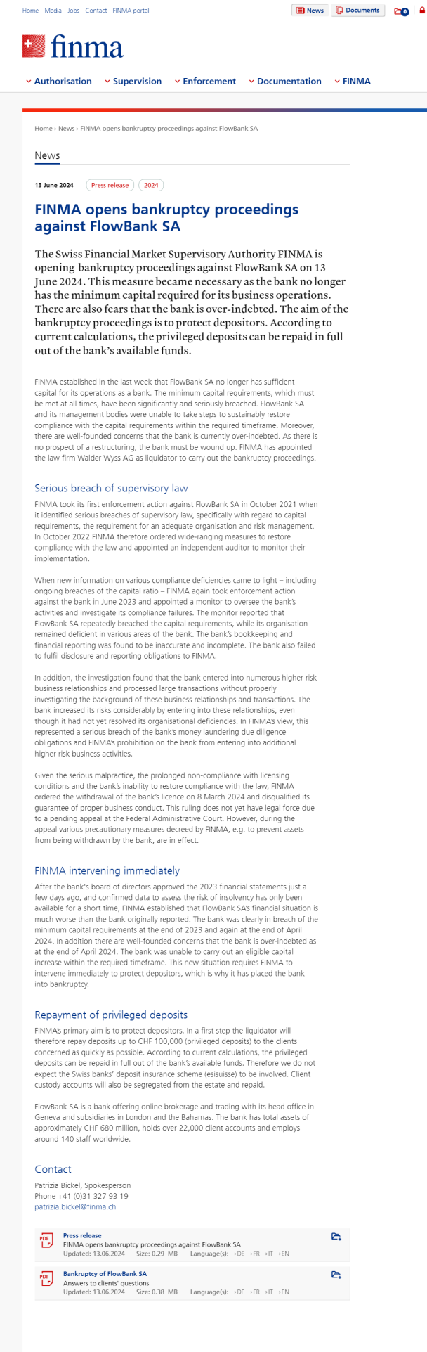 FINMA opens bankruptcy proceedings against FlowBank SA(新闻稿附件):20240613 mm flowbank.pdf