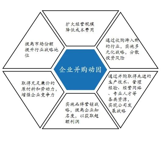 企业并购的根本动机,或是企业趋于追求利润的本性,或是由于竞争压力而被迫采取主动行动。寻求扩张的企业面临着依靠内部扩张和通过并购谋求发展的选择。内部扩张往往需要经过一个缓慢而不确定的过程,通过并购发展则可迅速达到预期目标。