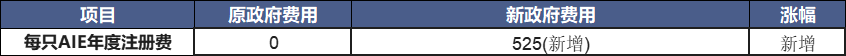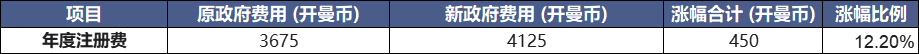• 新增收费项目:525开曼币/年(含审计提交费,统一标准)