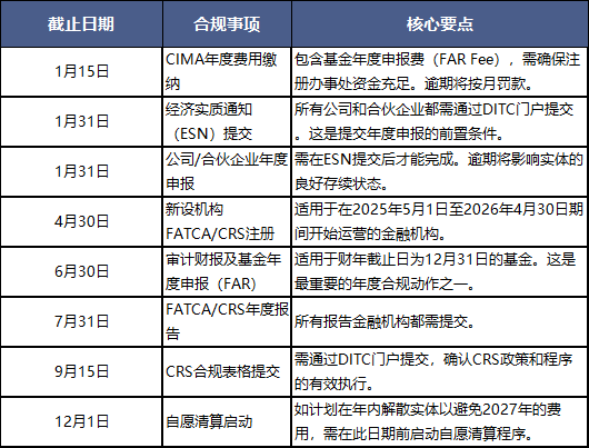 2026年开曼基金合规关键节点
