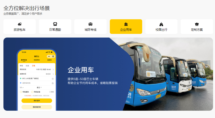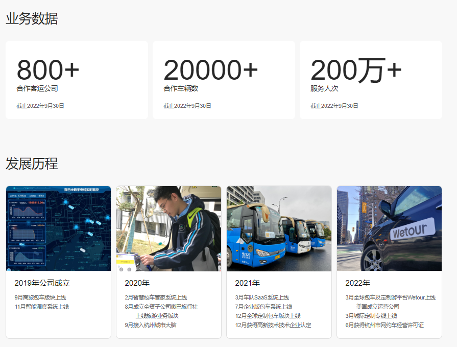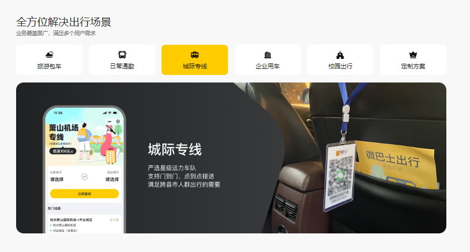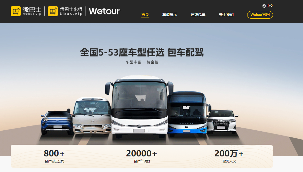 企业运营至今,用户可以通过平台进行目的地商旅包车,大客户通勤班车,周边短途出游,城际专线预订以及全球中文包车服务预定,针对不同出现场景,服务车型覆盖5-55座,我们提供多样化的产品和服务,吸引国内和全球日益增长的出行群体。微巴士始终以助力全球集约出行行业产业升级为己任,致力于打造“数据+平台+算法+运营”的全球中文包车及定制旅行平台,为客户营造安全、高效、智能和丰富出游服务场景。