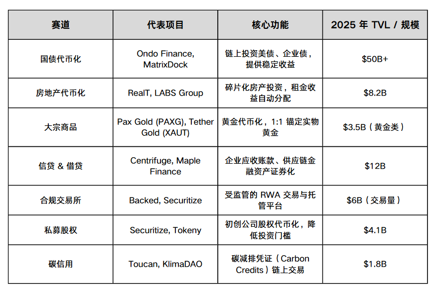 三、RWA 的主要赛道与代表项目