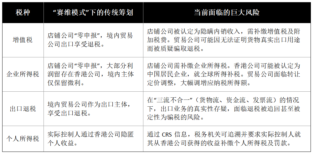 新监管环境下,“赛维模式”对各项税收的“筹划”效果已转变为巨大的税务风险。