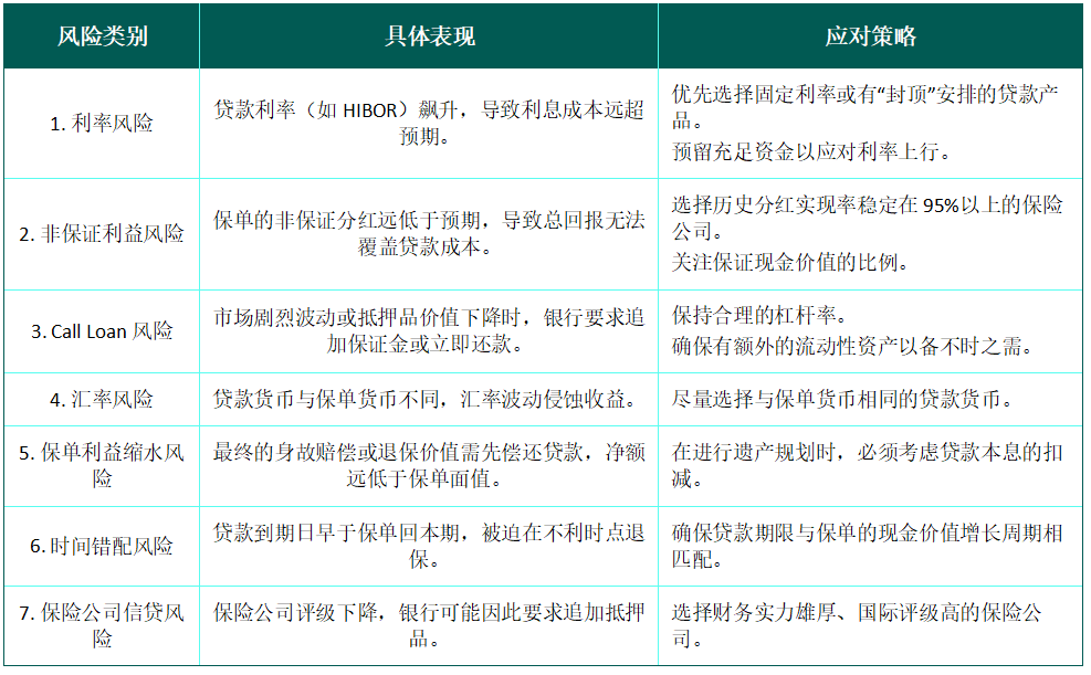 保费融资的诱人收益背后,是香港保监局(IA)反复强调的七大核心风险。任何考虑此策略的投资者都必须逐一审视: