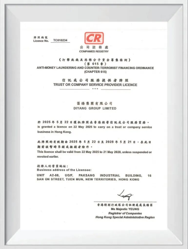 笛杨集团持香港合规TCSP秘书牌照,我们的专家团队将为您量身定制全面的合规解决方案,确保您的业务在全球舞台上高枕无忧,行稳致远。