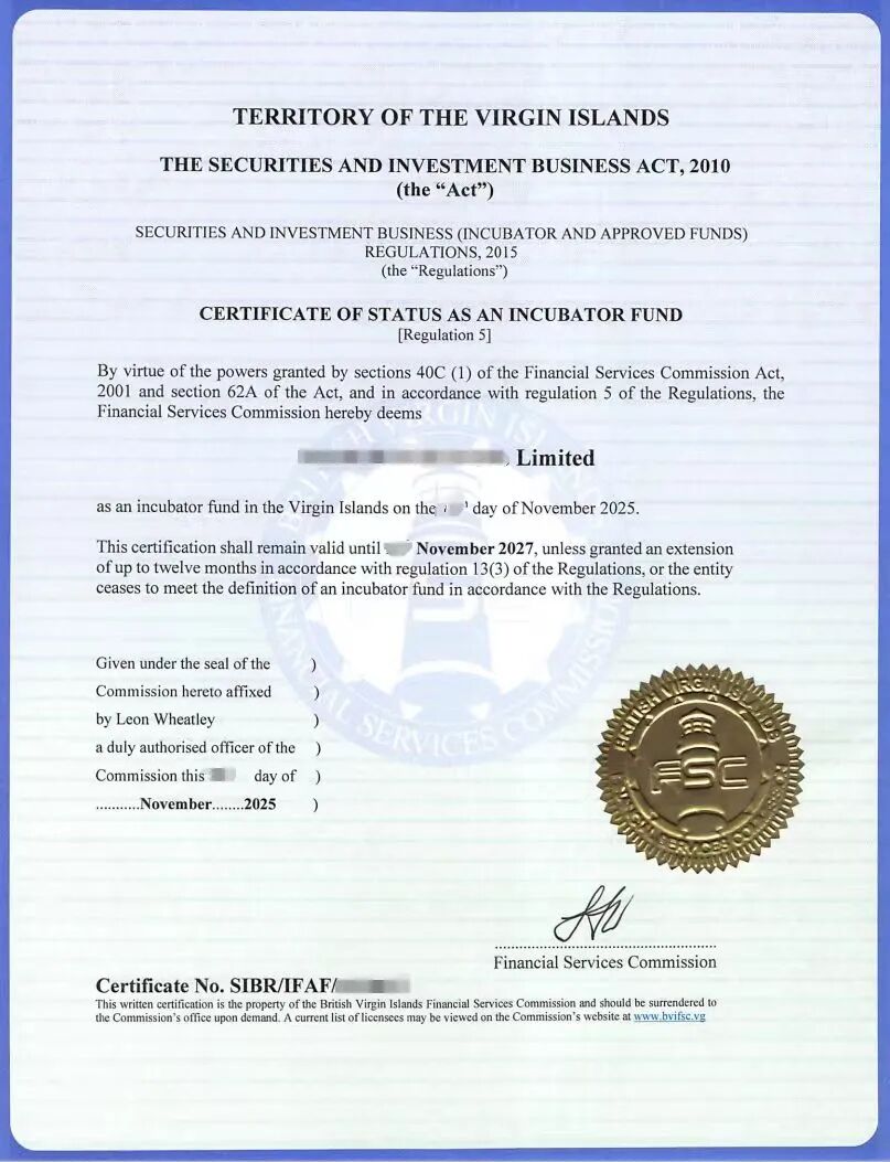 恭喜笛杨基金团队完成11月的第一支BVI INCUBATOR FUND孵化器基金备案。