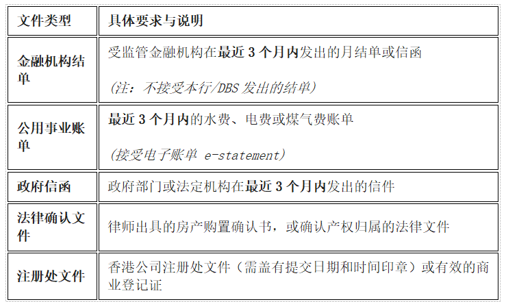 银行接受以下任一文件作为办公地址的有效证明: